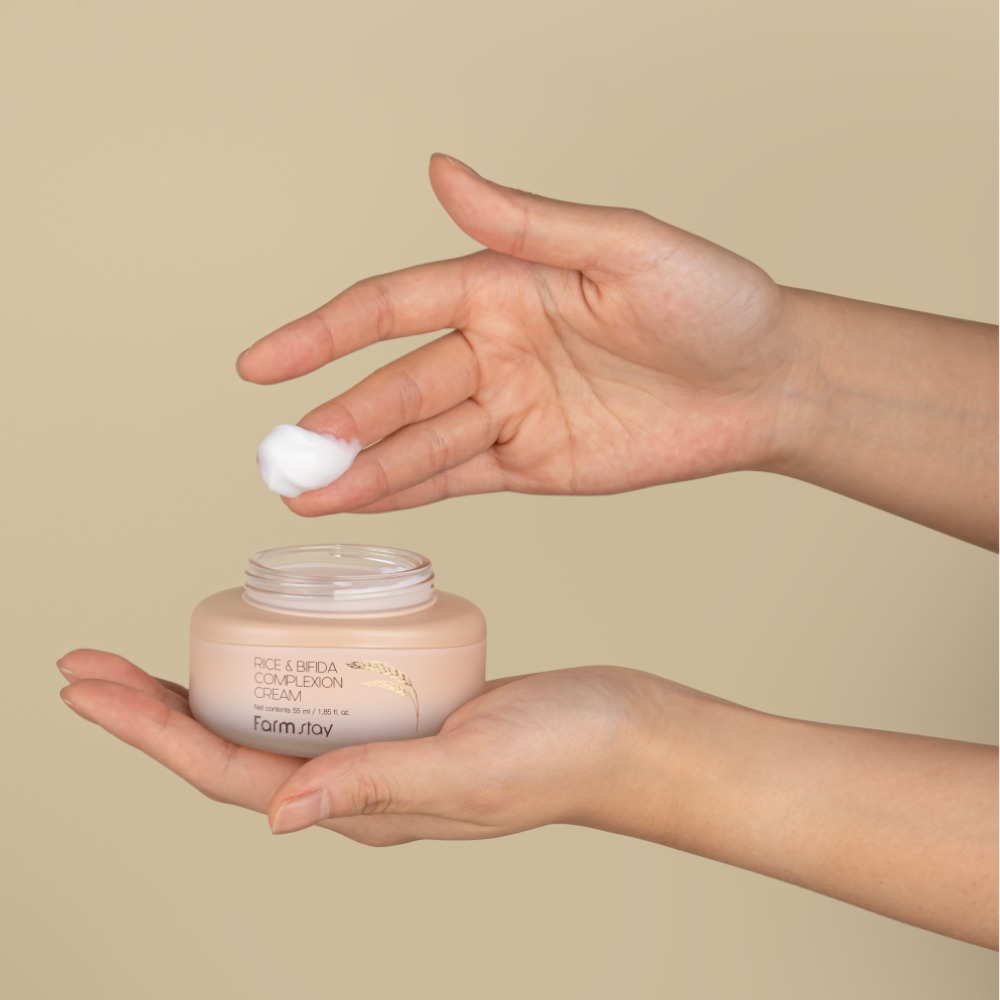 Η FARMSTAY Rice & Bifida Complexion Cream είναι μια κορεάτικη κρέμα προσώπου σχεδιασμένη για να βελτιώνει την όψη της επιδερμίδας, χαρίζοντας φωτεινότητα, ενυδάτωση και πιο ομοιόμορφο τόνο 🌸